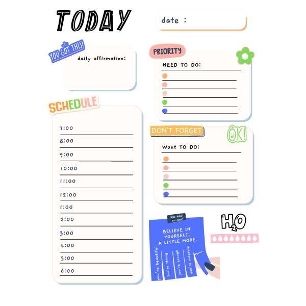 A fun and simple weekly and daily planner PDF that will help keep you to schedule without being overwhelming.